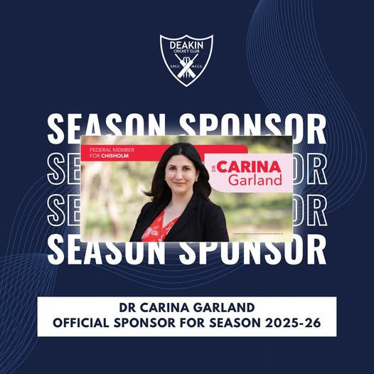 We are proud to welcome Dr Carina Garland, Federal Member for Chisholm, as the Official Sponsor of Deakin Cricket Club for the 2025–26 season
